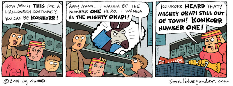 Wow, it’s been awhile. I have a new book! It’s called Darkness In Klimklodia. Readers of Small Blue Yonder may be familiar with Klimklodia via strips like this, and this, and this, and this, and this.