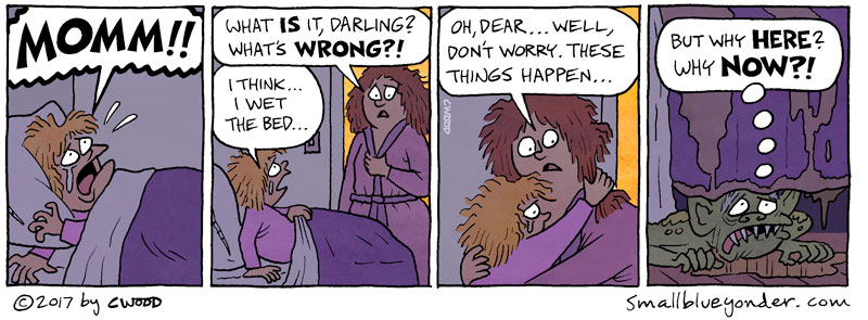 Wow, it’s been awhile. I have a new book! It’s called Darkness In Klimklodia. Readers of Small Blue Yonder may be familiar with Klimklodia via strips like this, and this, and this, and this, and this.